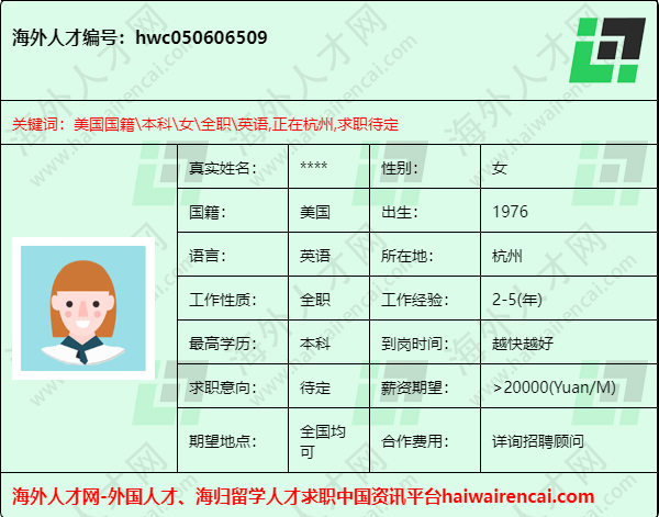 海外人才,美国外教,在杭州,喜欢小朋友,教学风格活泼,城市不限