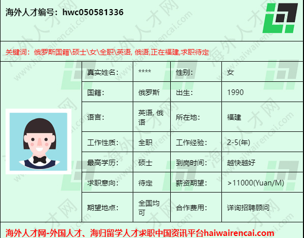 海外人才,俄罗斯外教,硕士,口音好, 形象佳, 有多年幼儿园培训教学经验,求职不限