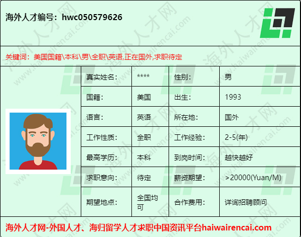 海外人才,美国外教,在国外,本科,经验丰富,形象佳,可以教任何年龄段学生