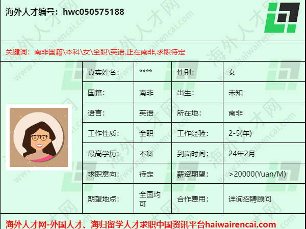 海外人才编号 hwc050599888 推荐指数 …